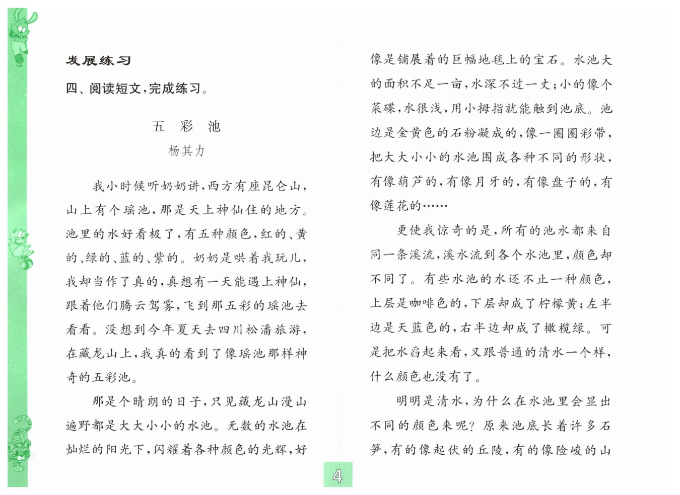 2.(1)水池大大小小,深浅不一。 (2)形状各不相同。 (3)阳光透过池水射到池底,折射成各种不同的色彩。