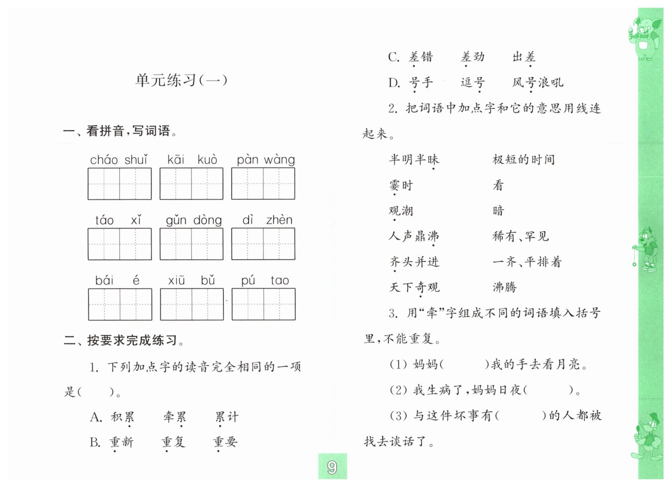 (1)牵着 (2)牵挂 (3)牵连(牵扯)