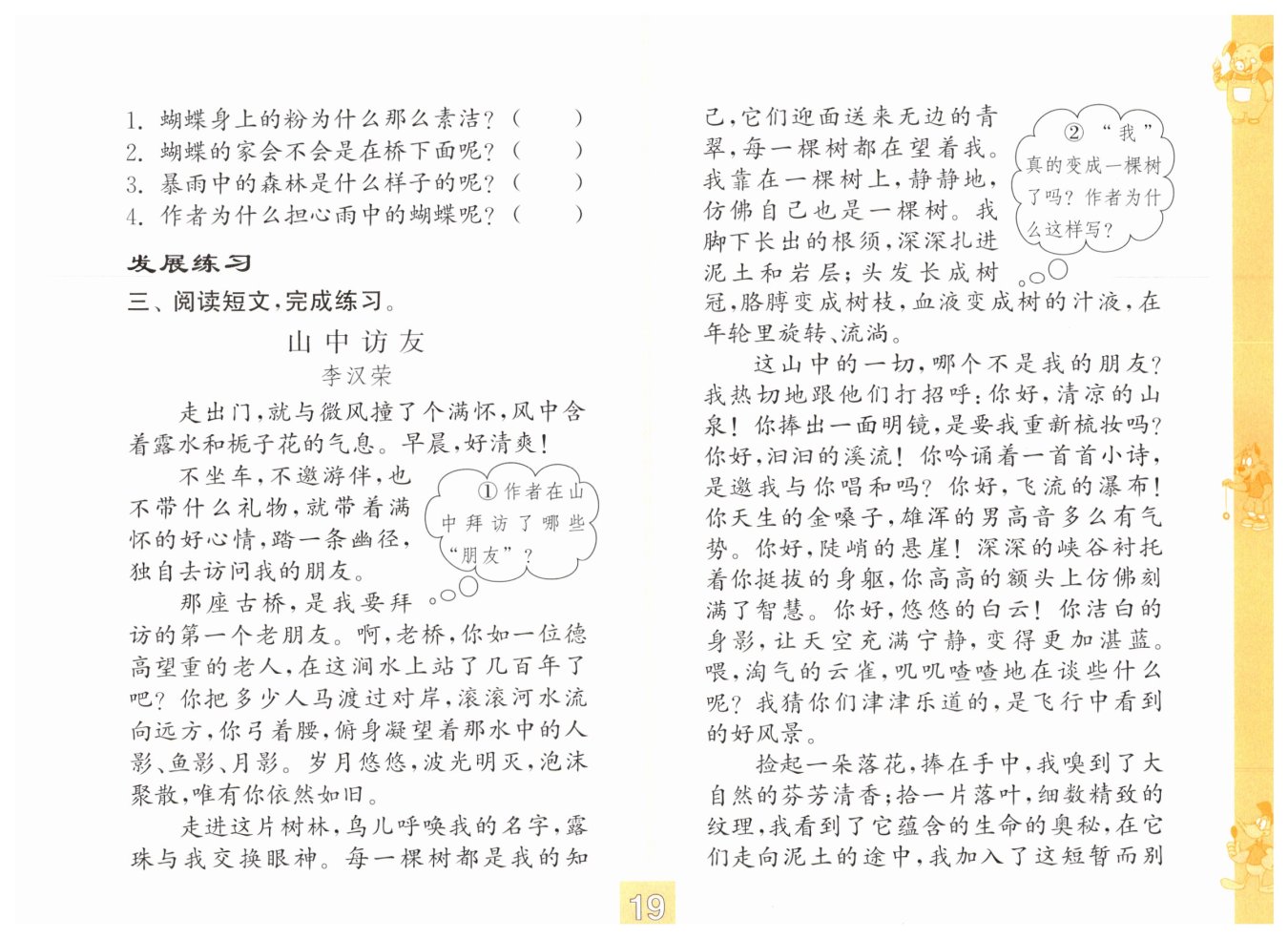 2.① 作者拜访了古桥、树林、山泉、溪流、瀑布、悬崖、白云、云雀、落花、落叶、石头、雷阵雨等自然界的朋友。
