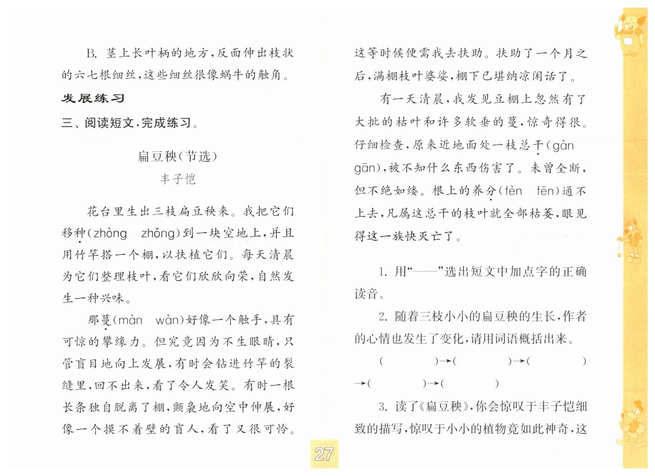 3. 如第 2 自然段中的第 2 句话,“钻进”等词语。又如第 3 自然段中的句子。