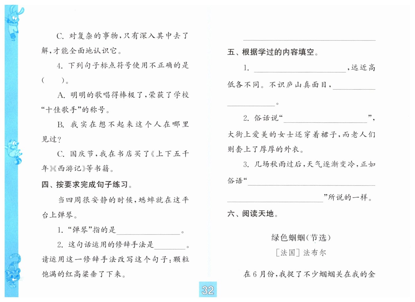 彩色版四年级语文练习与测试答案