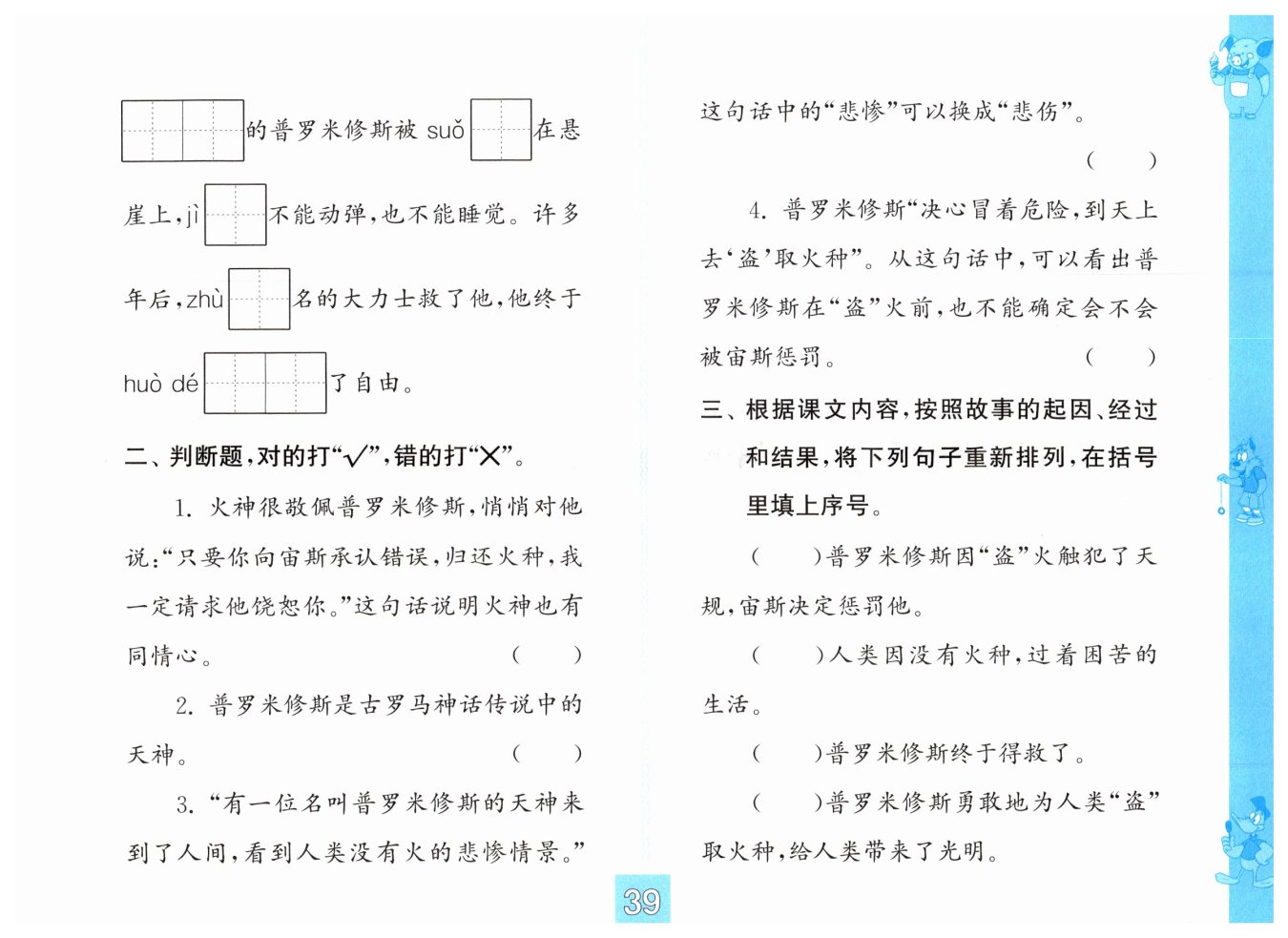 彩色版四年级语文练习与测试答案
