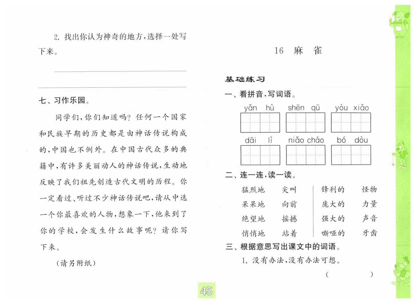 “大圣,您能给我们表演个法术吗?”不知是谁喊了一声。孙悟空嘿嘿一笑:“这有何难!”只见他拔下一根毫毛,轻轻一吹,毫毛立刻变成了一群小猴子,它们在教室里翻跟头、耍金箍棒,逗得同学们哈哈大笑。