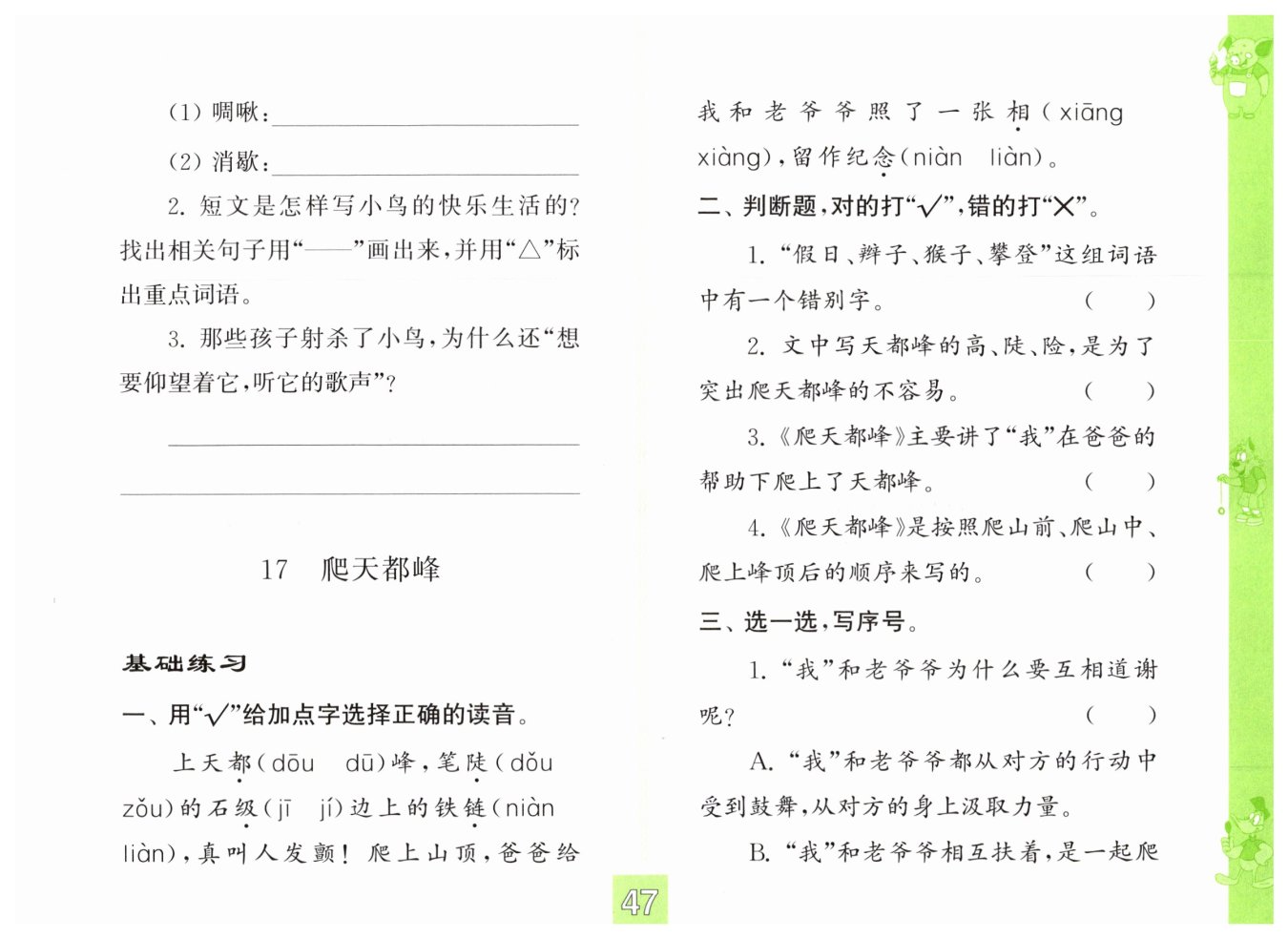3. 他们并不是真的想杀害小鸟,只是喜爱就想占有小鸟,射杀了小鸟,再也听不到小鸟的歌唱,他们又很失望。