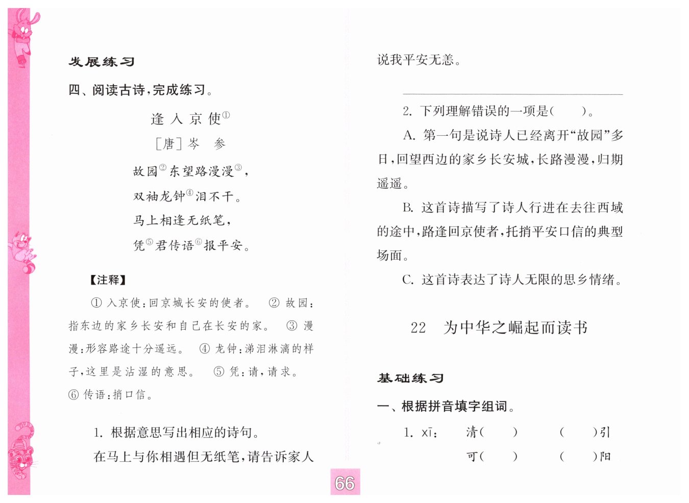 彩色版四年级语文练习与测试答案
