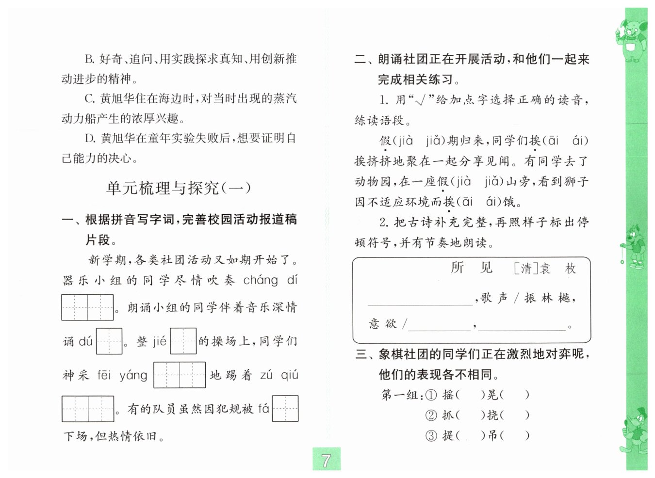 1. ① 头 脑 ② 耳 腮 ③ 心 胆 ④ 目 口 ⑤ 手 眼 ⑥ 手 足 2. ② ⑤ ⑥