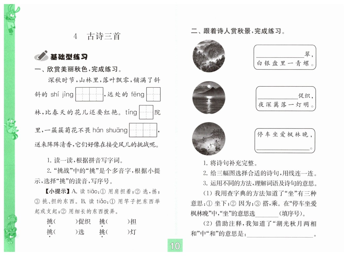 1. 石径 枫 庭 寒霜 2. B A A B