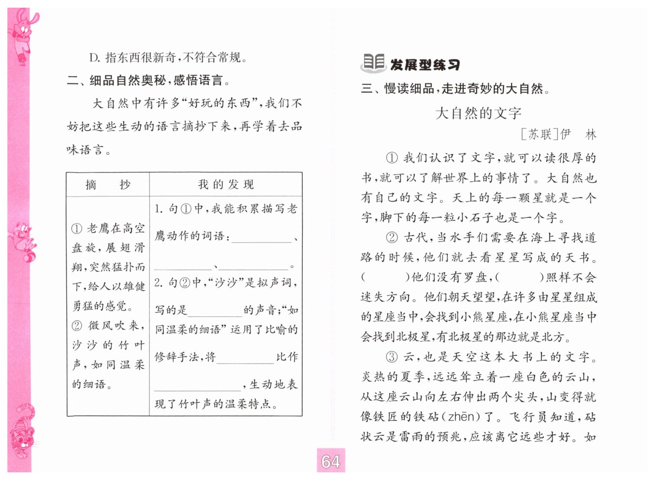 1. 盘旋 展翅滑翔 猛扑而下 2. 竹叶 竹叶声 温柔的细语