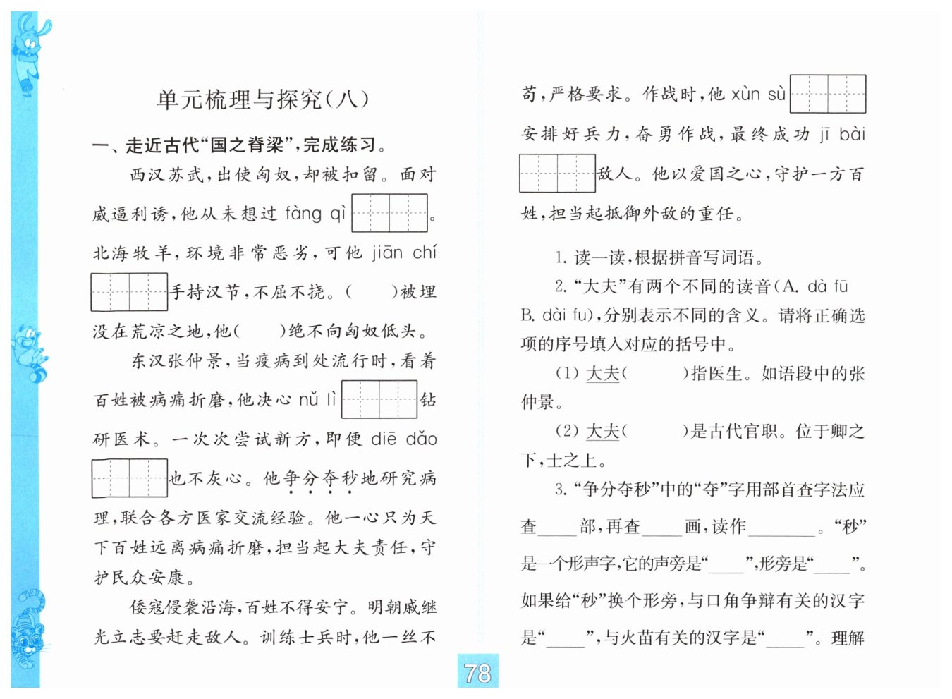 1. 放弃 坚持 努力 跌倒 迅速 击败 2. (1) B (2) A 3. 大 3 duó 少 禾 吵 炒 联系上下文(查字典、拆字组词等) 4. B