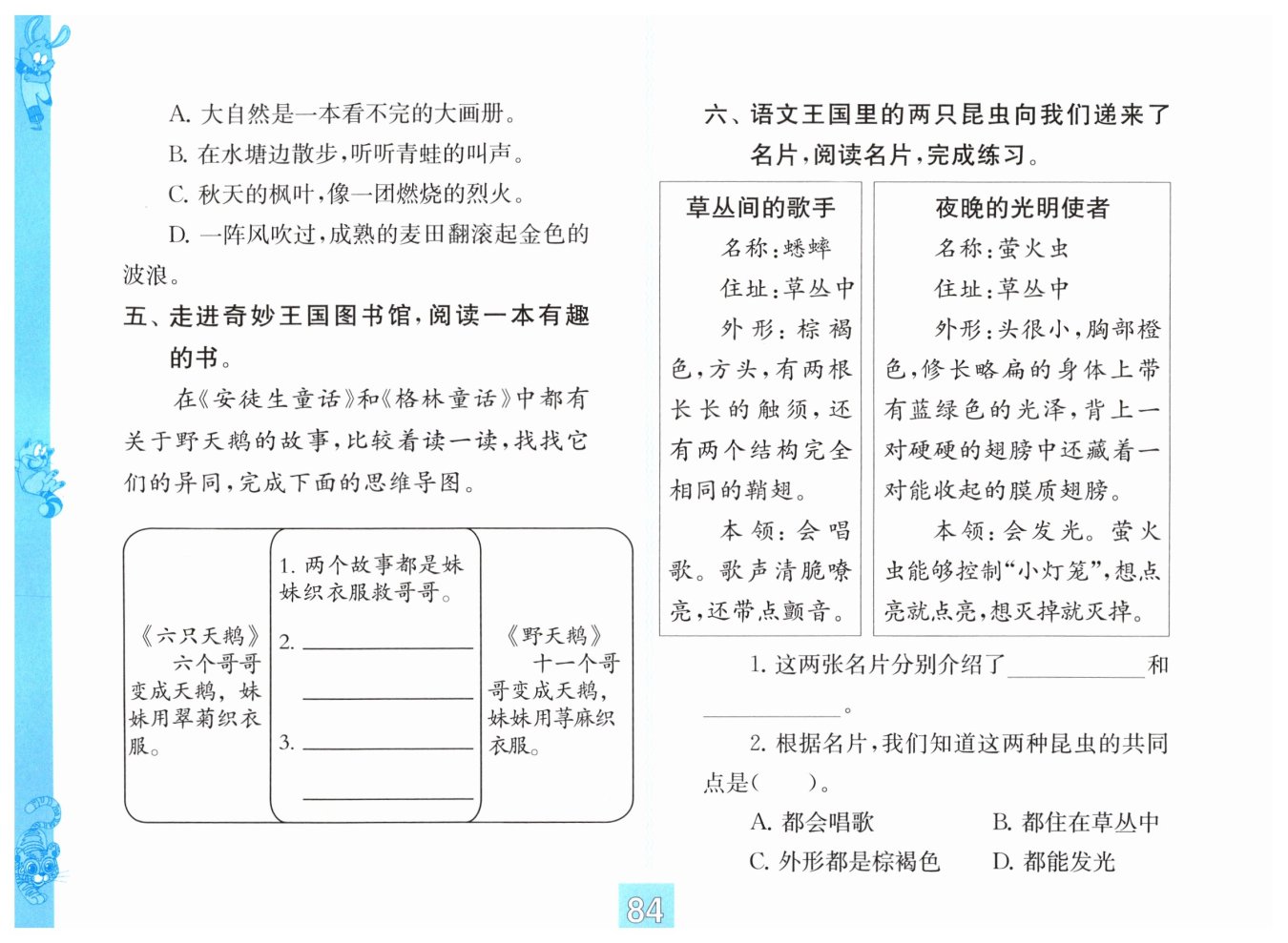示例:2. 两个故事里哥哥都变成白天鹅。 3. 两个故事的最后,他们都过上了幸福的生活。