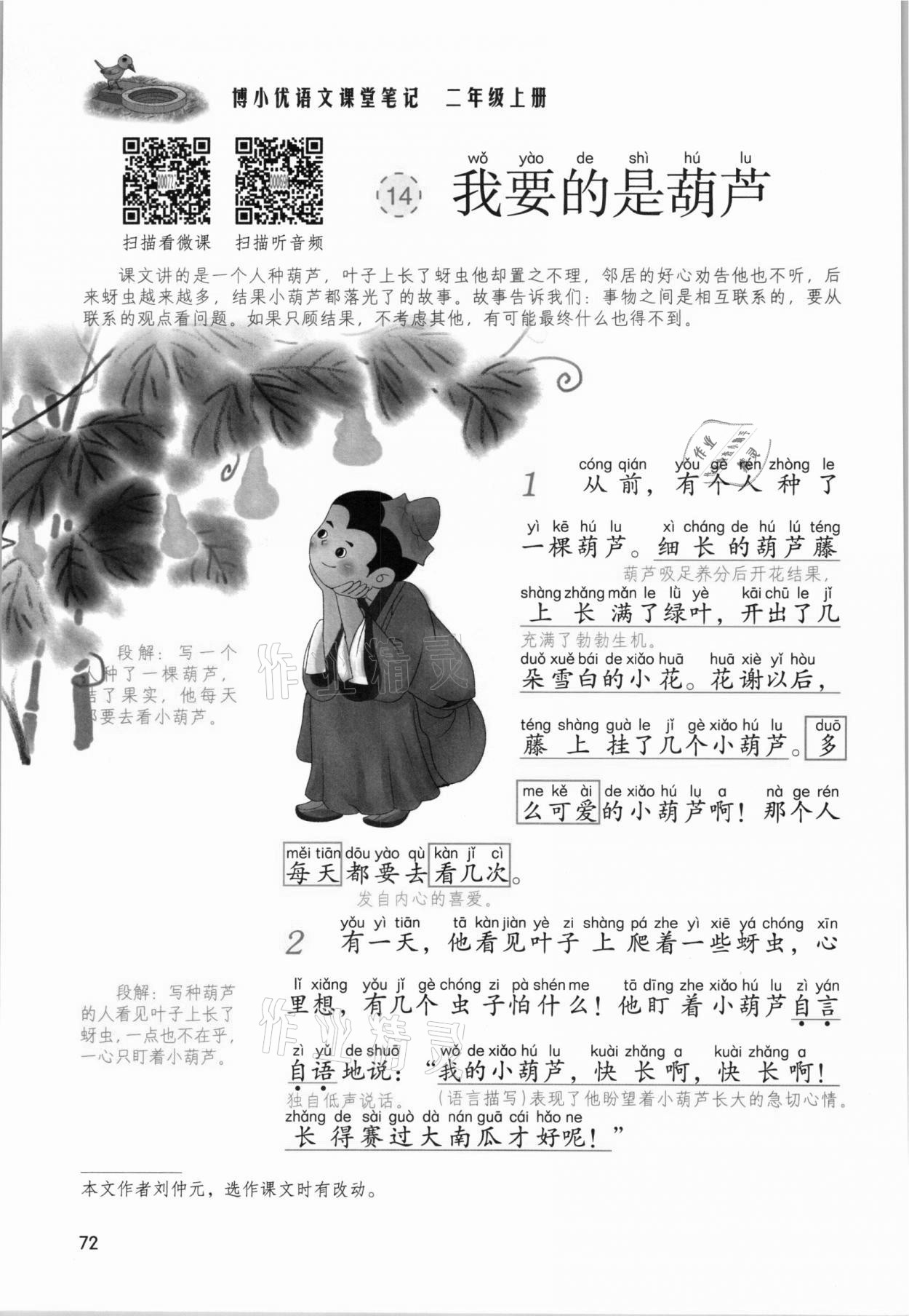 2021年教材课本二年级语文上册人教版参考答案第72页