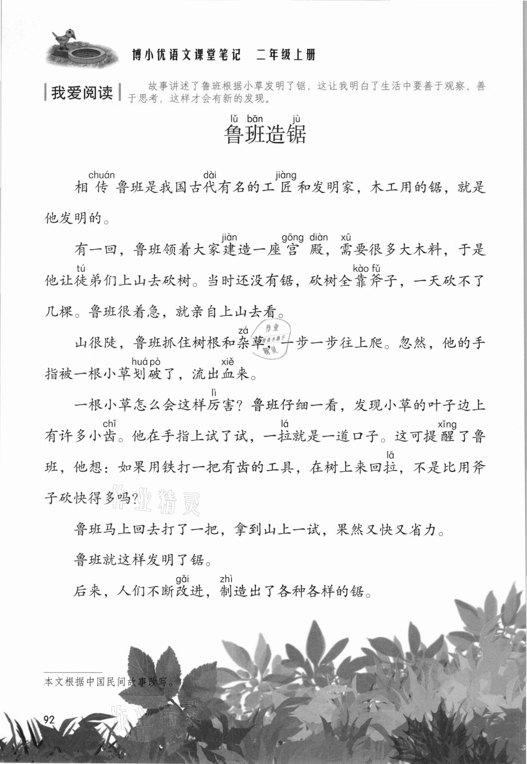 2021年教材课本二年级语文上册人教版参考答案第92页