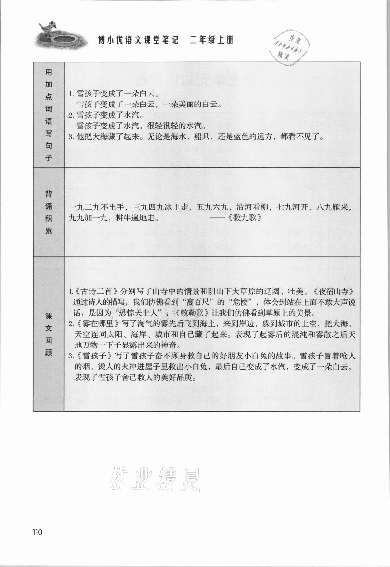 2021年教材课本二年级语文上册人教版参考答案第110页
