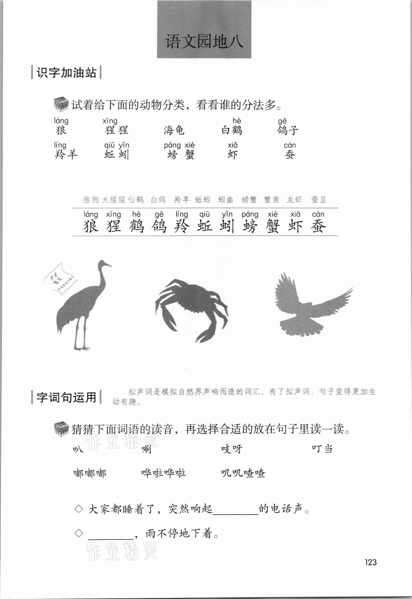 2021年教材课本二年级语文上册人教版参考答案第123页