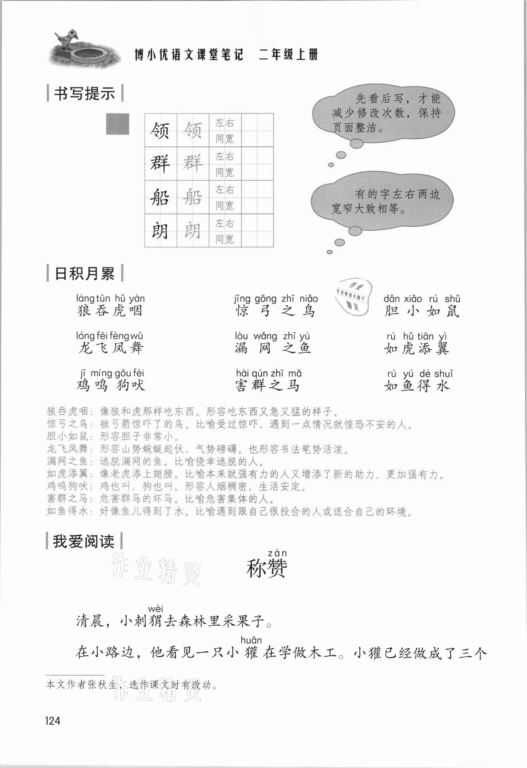 2021年教材课本二年级语文上册人教版参考答案第124页