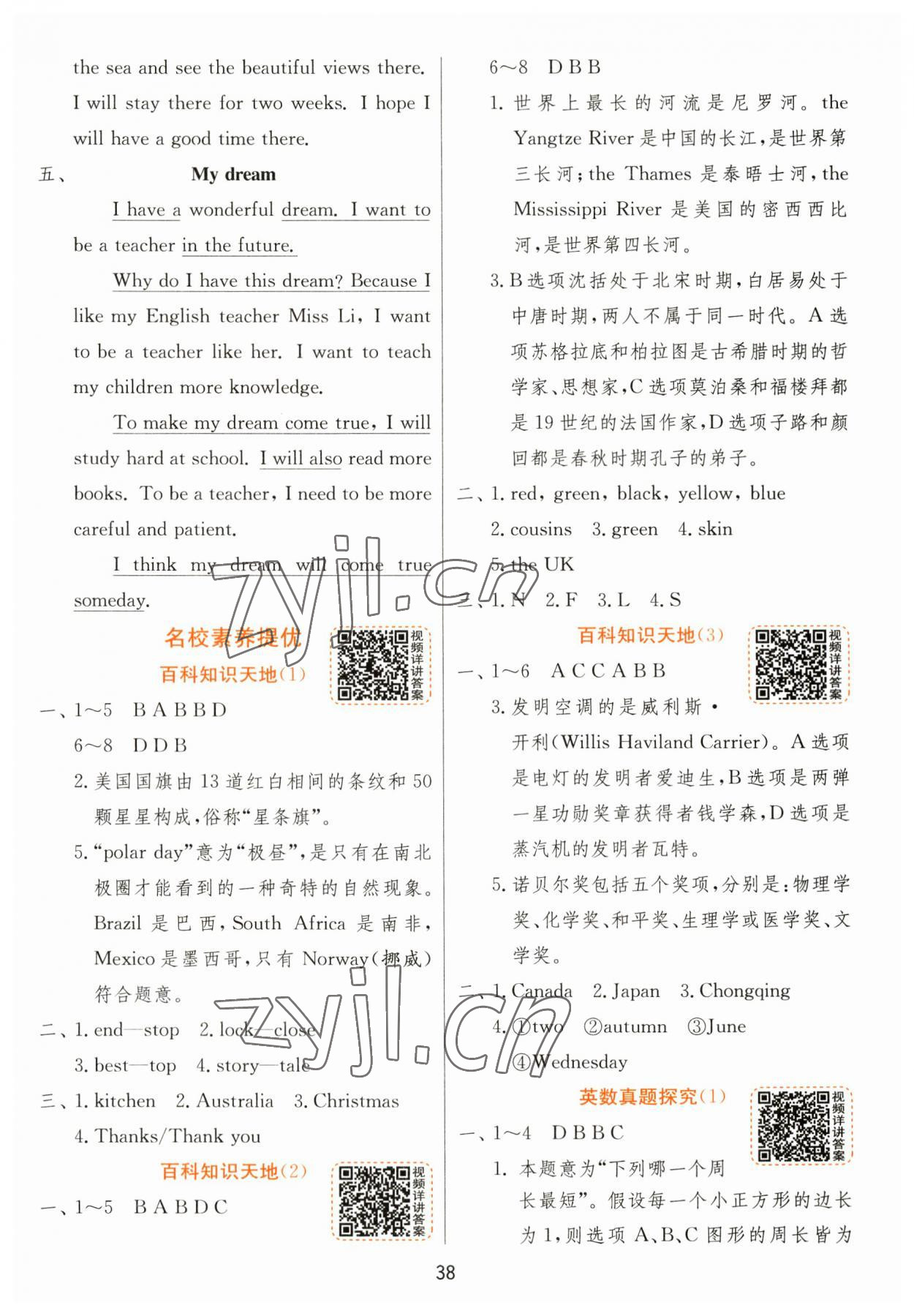2023年实验班提优训练六年级英语下册译林版江苏参考答案第38页