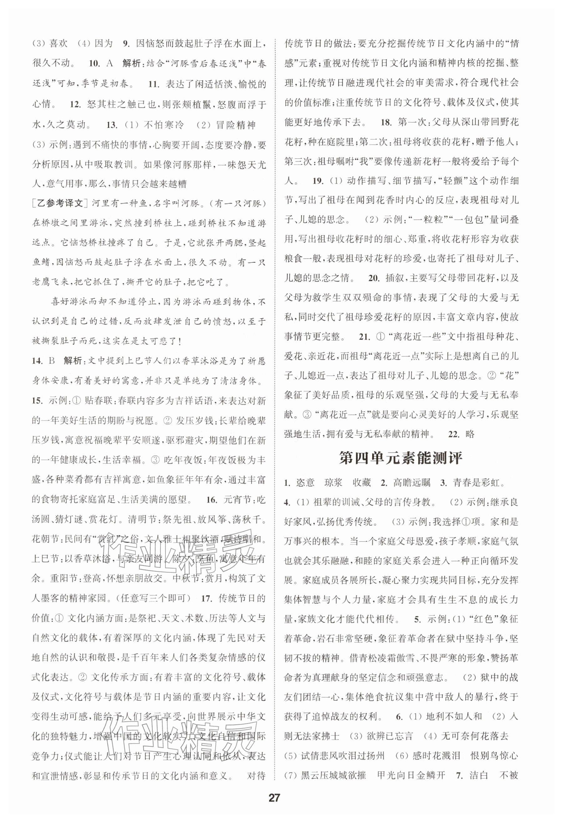 2025年通城学典课时作业本八年级语文上册人教版南通专版参考答案第27页