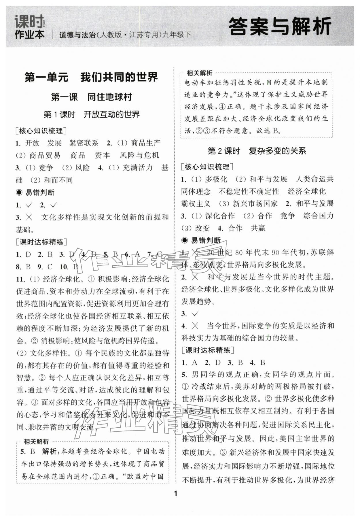 2026年通城学典课时作业本九年级道德与法治下册人教版江苏专版参考答案第1页