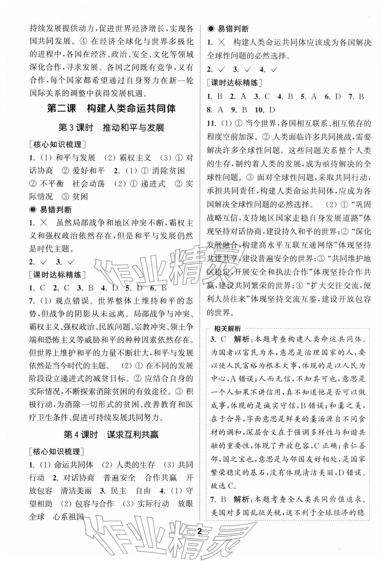 2026年通城学典课时作业本九年级道德与法治下册人教版江苏专版参考答案第2页