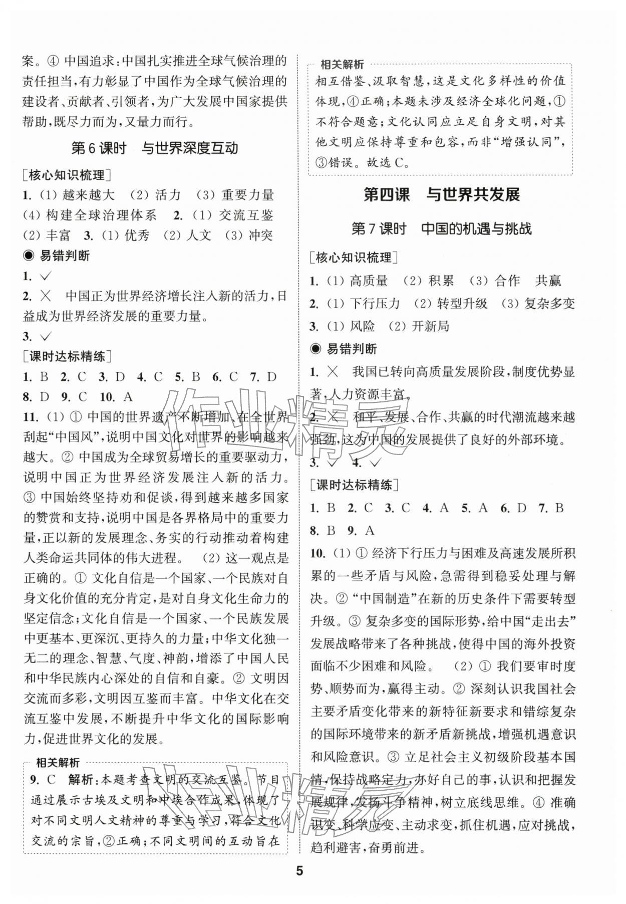 2026年通城学典课时作业本九年级道德与法治下册人教版江苏专版参考答案第5页