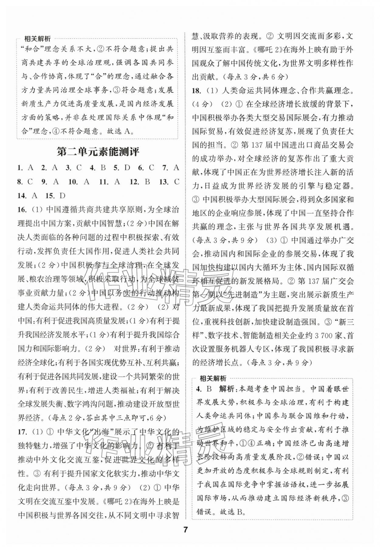 2026年通城学典课时作业本九年级道德与法治下册人教版江苏专版参考答案第7页