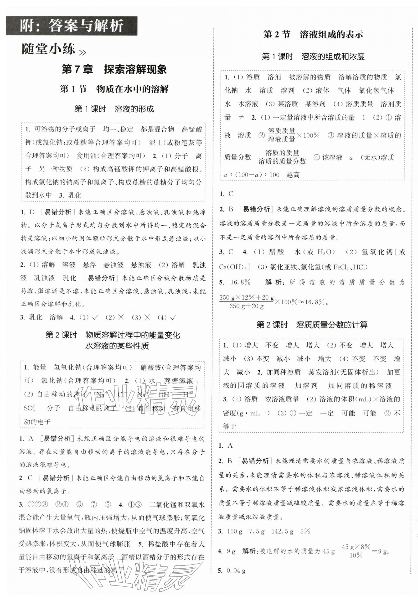 2026年通成学典课时作业本九年级化学下册沪教版江苏专版第1页