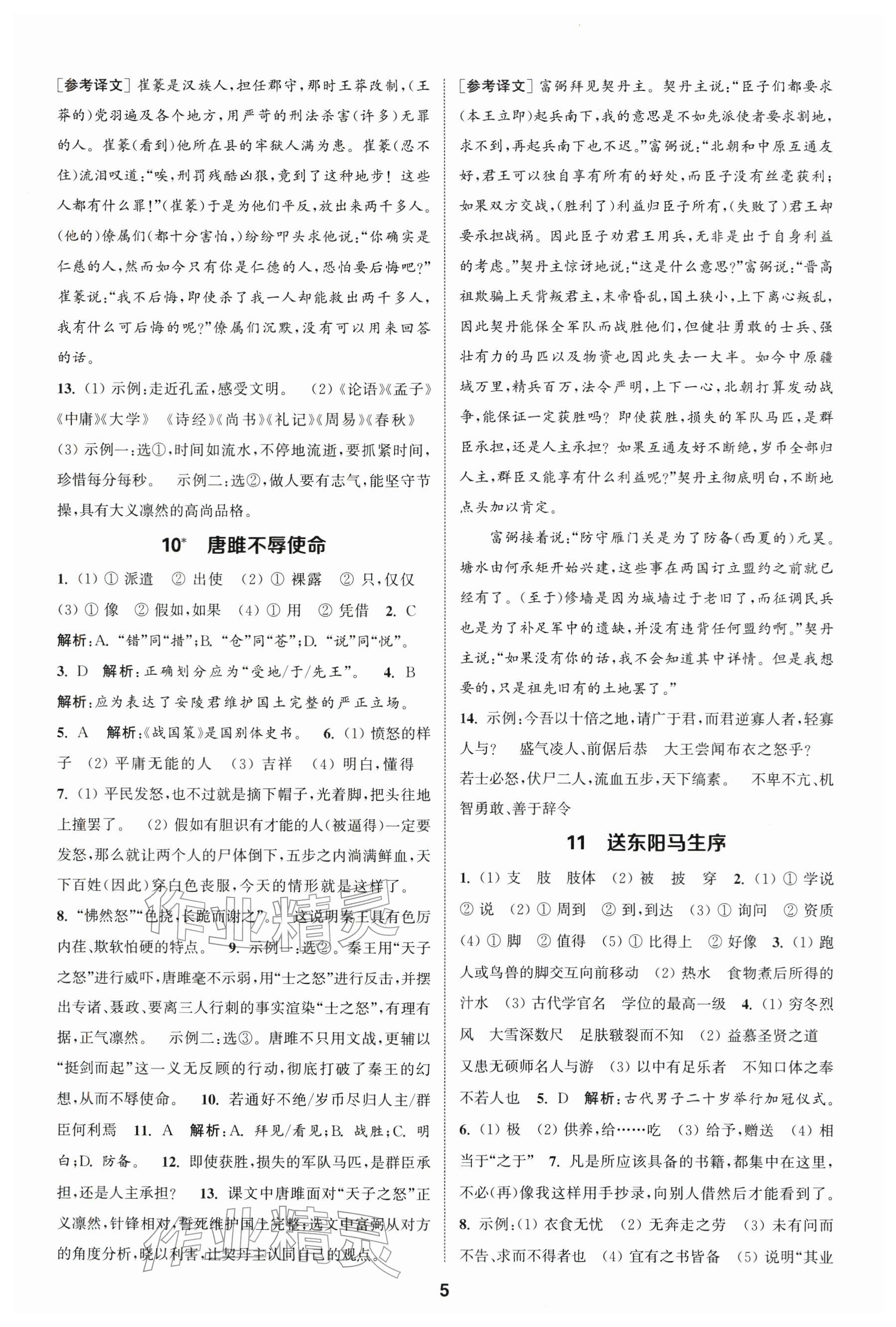 2026年通城学典课时作业本九年级语文下册人教版江苏专版参考答案第5页