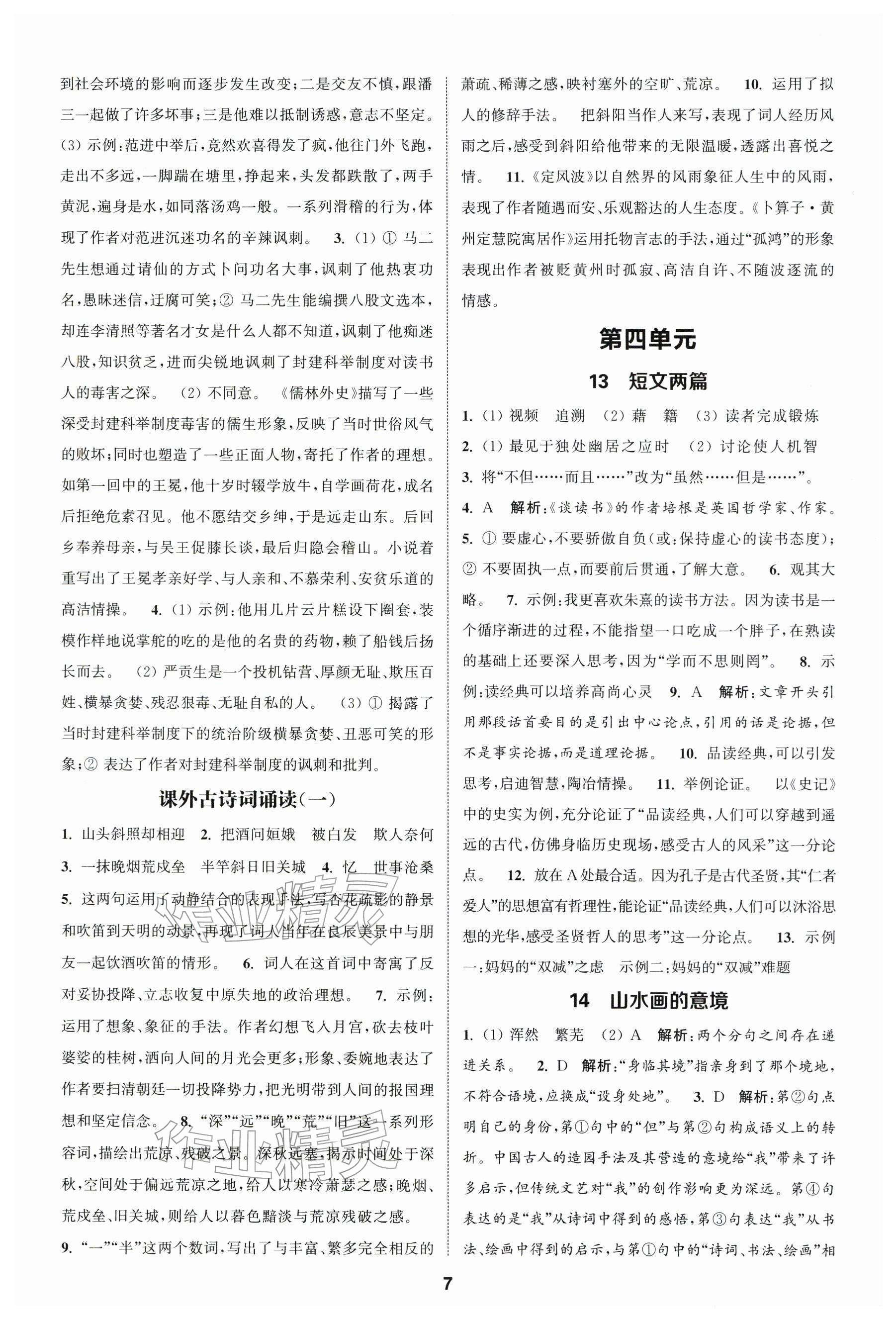 2026年通城学典课时作业本九年级语文下册人教版江苏专版参考答案第7页