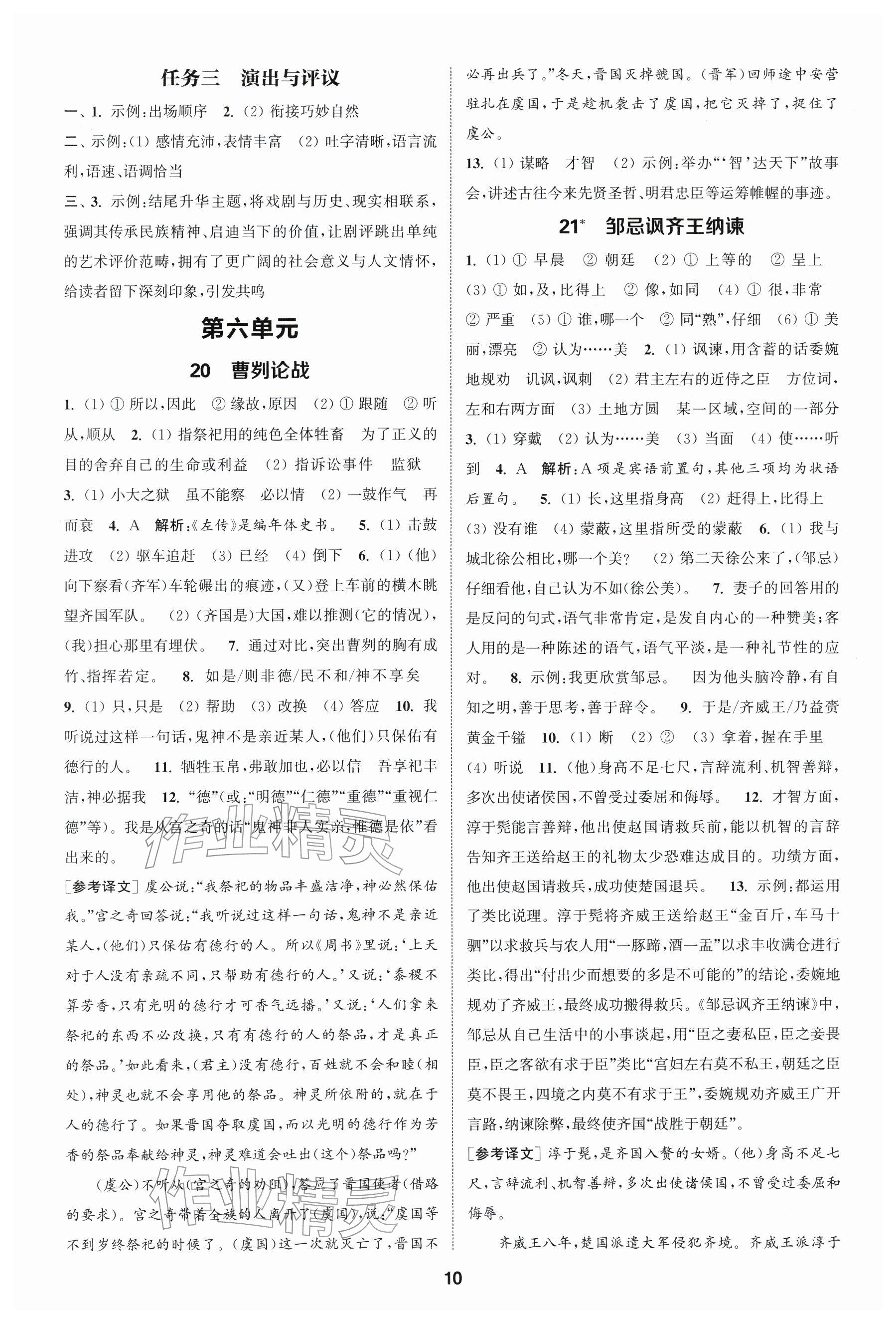 2026年通城学典课时作业本九年级语文下册人教版江苏专版参考答案第10页