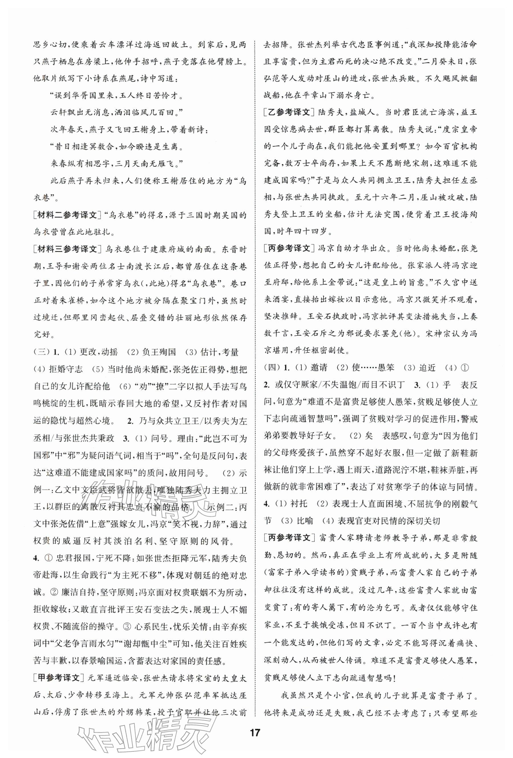 2026年通城学典课时作业本九年级语文下册人教版江苏专版参考答案第17页