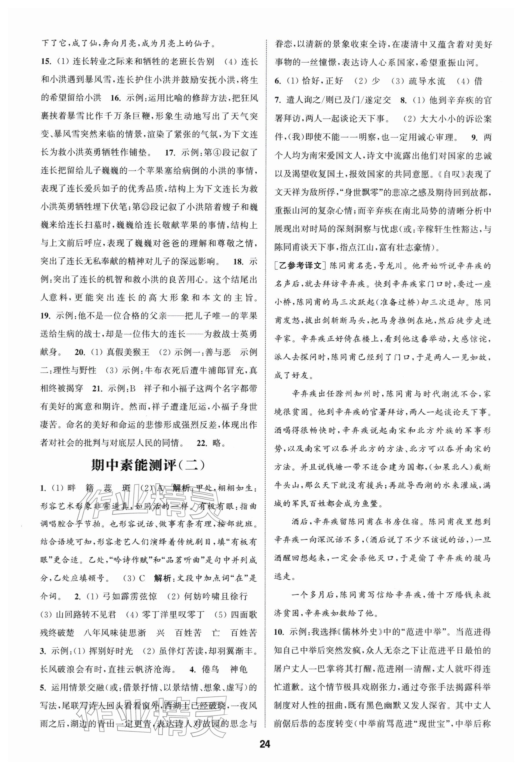 2026年通城学典课时作业本九年级语文下册人教版江苏专版参考答案第24页