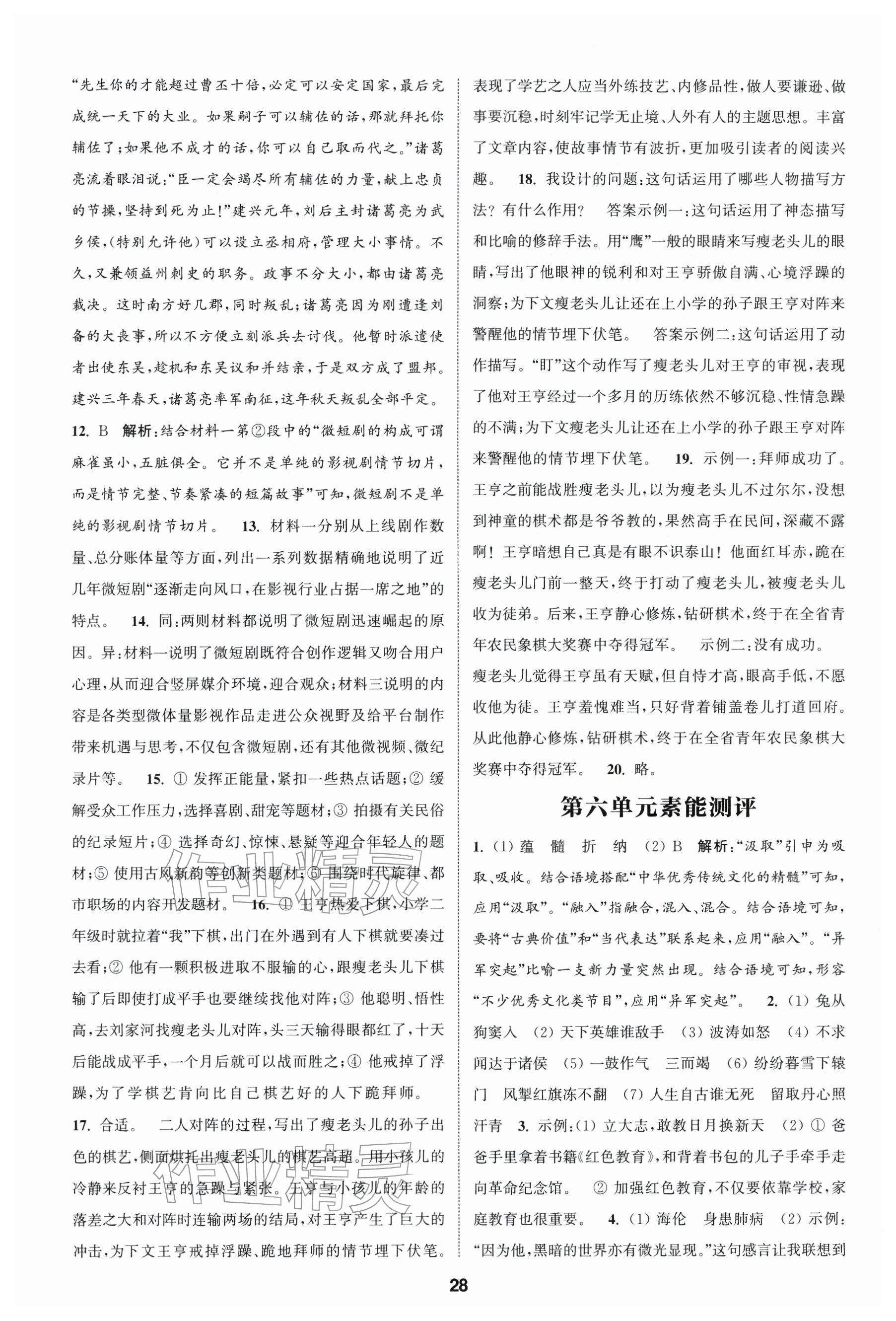 2026年通城学典课时作业本九年级语文下册人教版江苏专版参考答案第28页