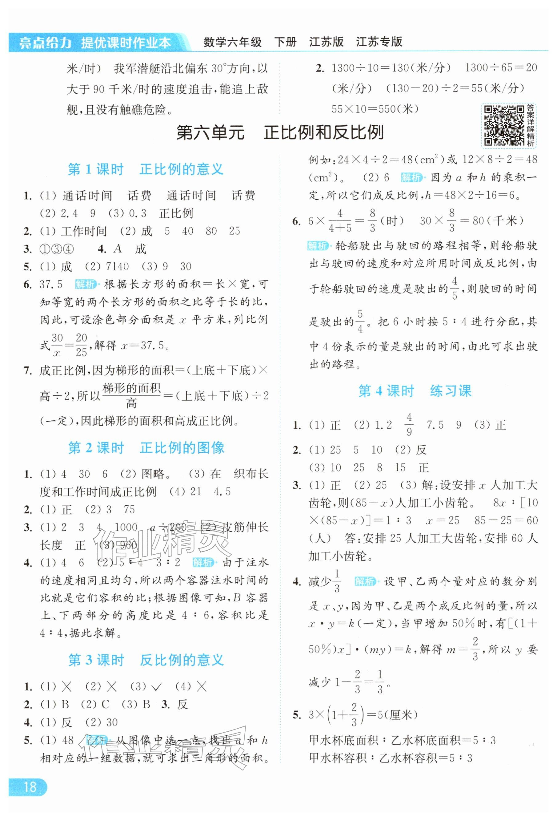 2026年亮点给力提优课时作业本六年级数学下册苏教版参考答案第18页