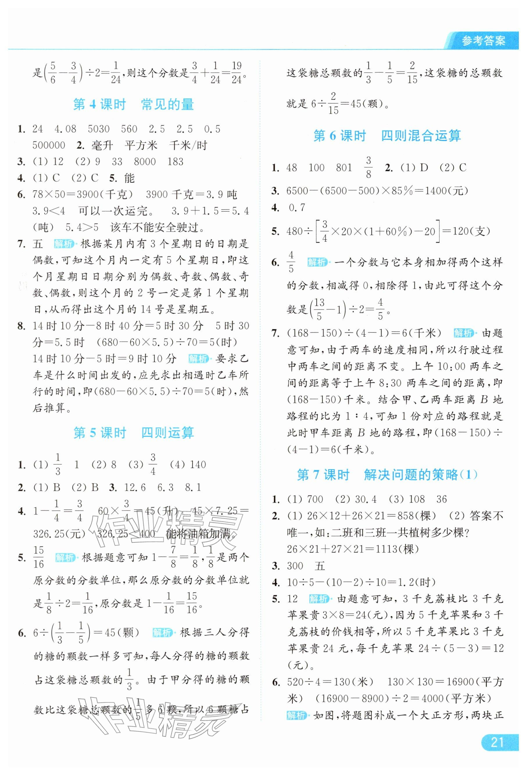 2026年亮点给力提优课时作业本六年级数学下册苏教版参考答案第21页