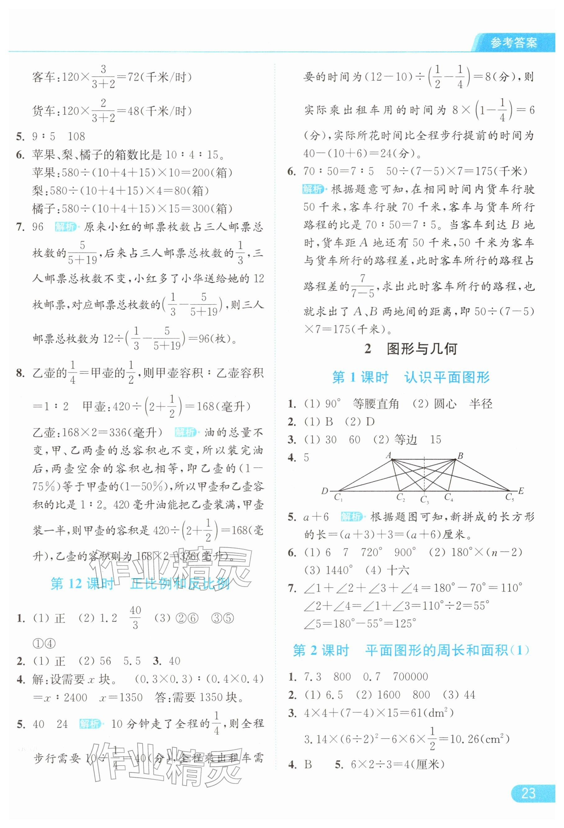 2026年亮点给力提优课时作业本六年级数学下册苏教版参考答案第23页