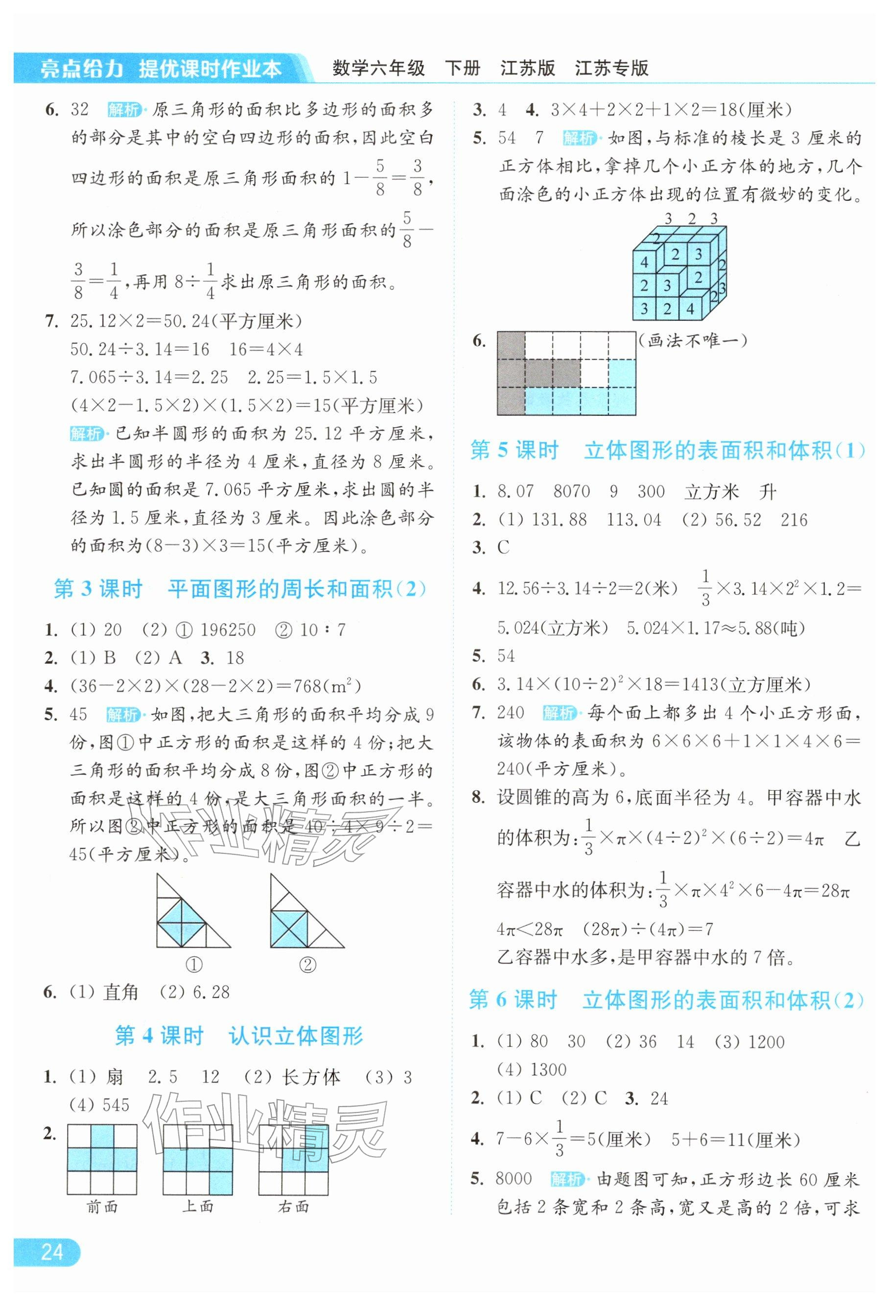 2026年亮点给力提优课时作业本六年级数学下册苏教版参考答案第24页