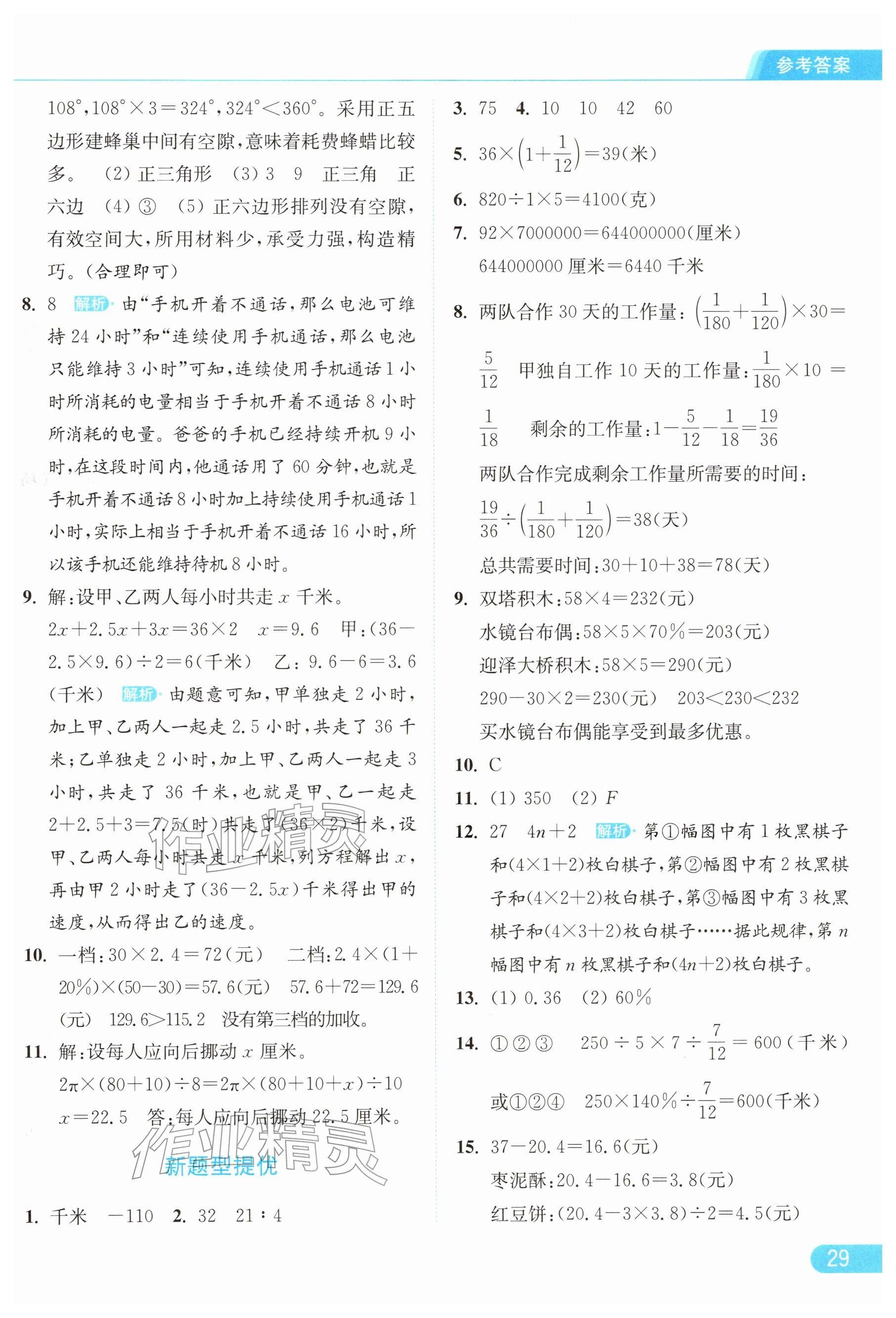 2026年亮点给力提优课时作业本六年级数学下册苏教版参考答案第29页
