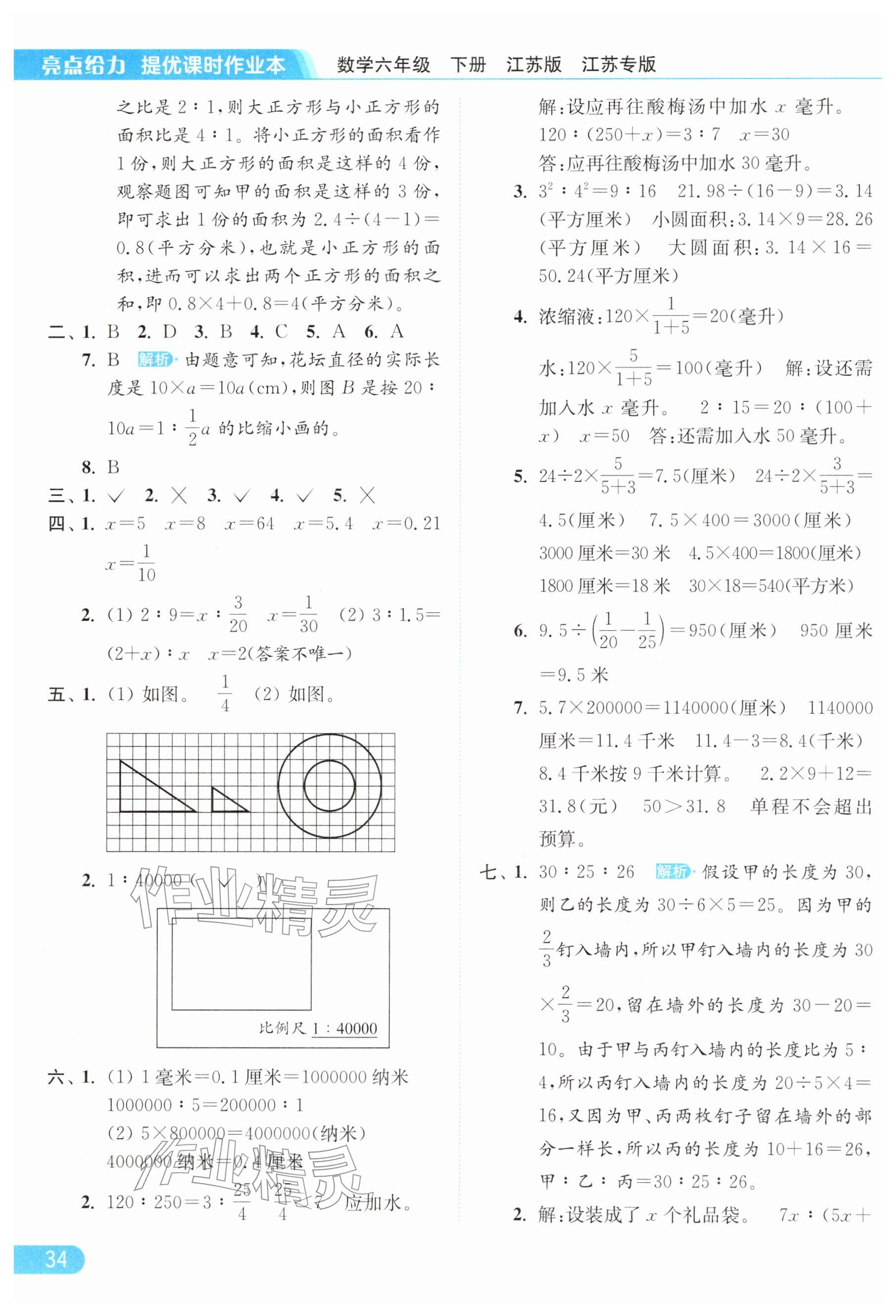 2026年亮点给力提优课时作业本六年级数学下册苏教版参考答案第34页