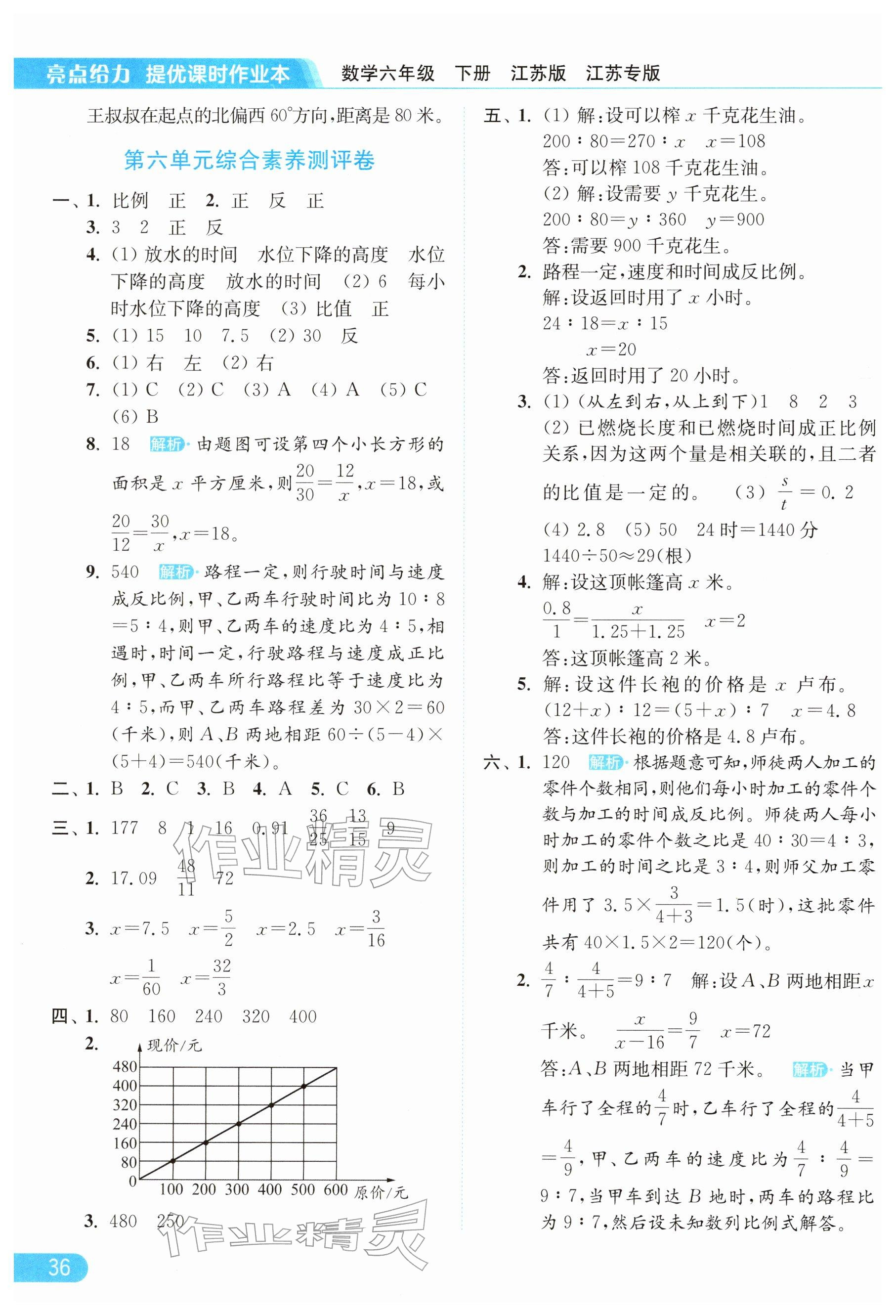 2026年亮点给力提优课时作业本六年级数学下册苏教版参考答案第36页