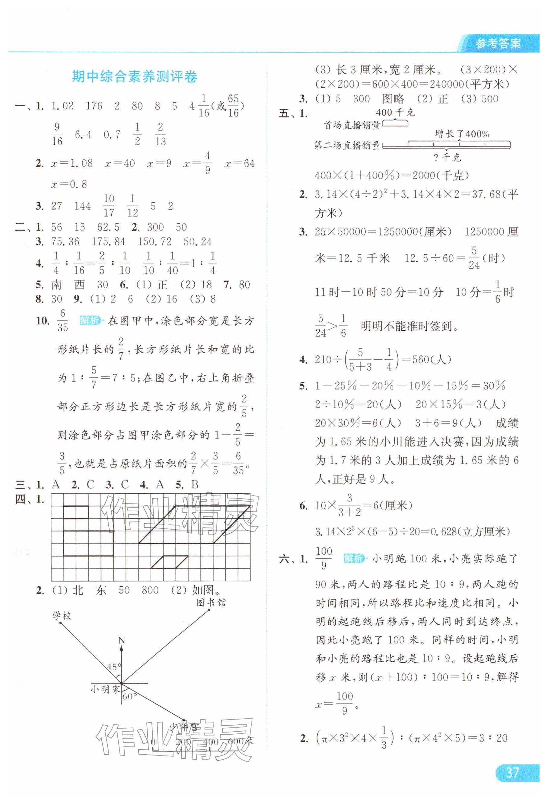 2026年亮点给力提优课时作业本六年级数学下册苏教版参考答案第37页