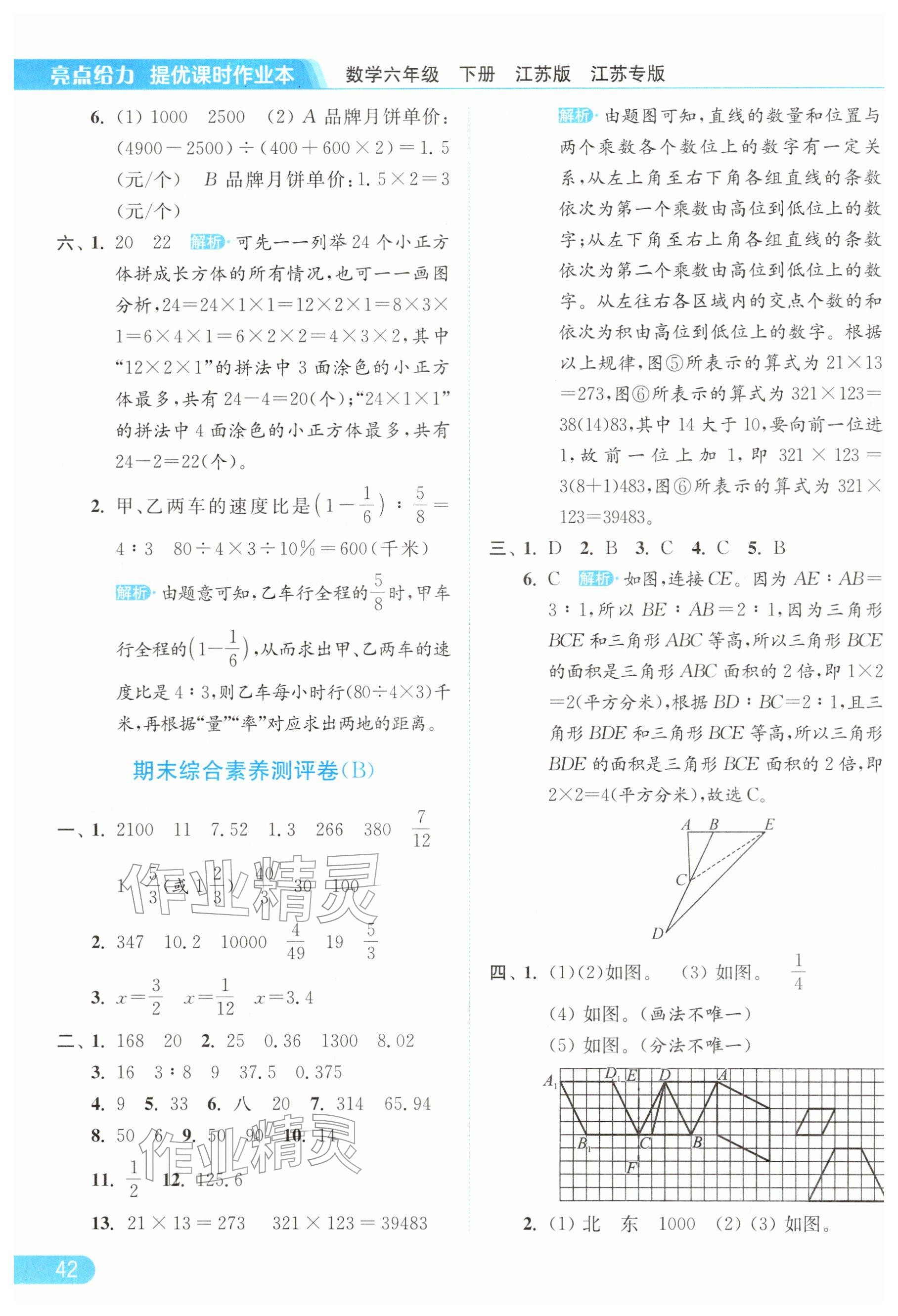 2026年亮点给力提优课时作业本六年级数学下册苏教版参考答案第42页
