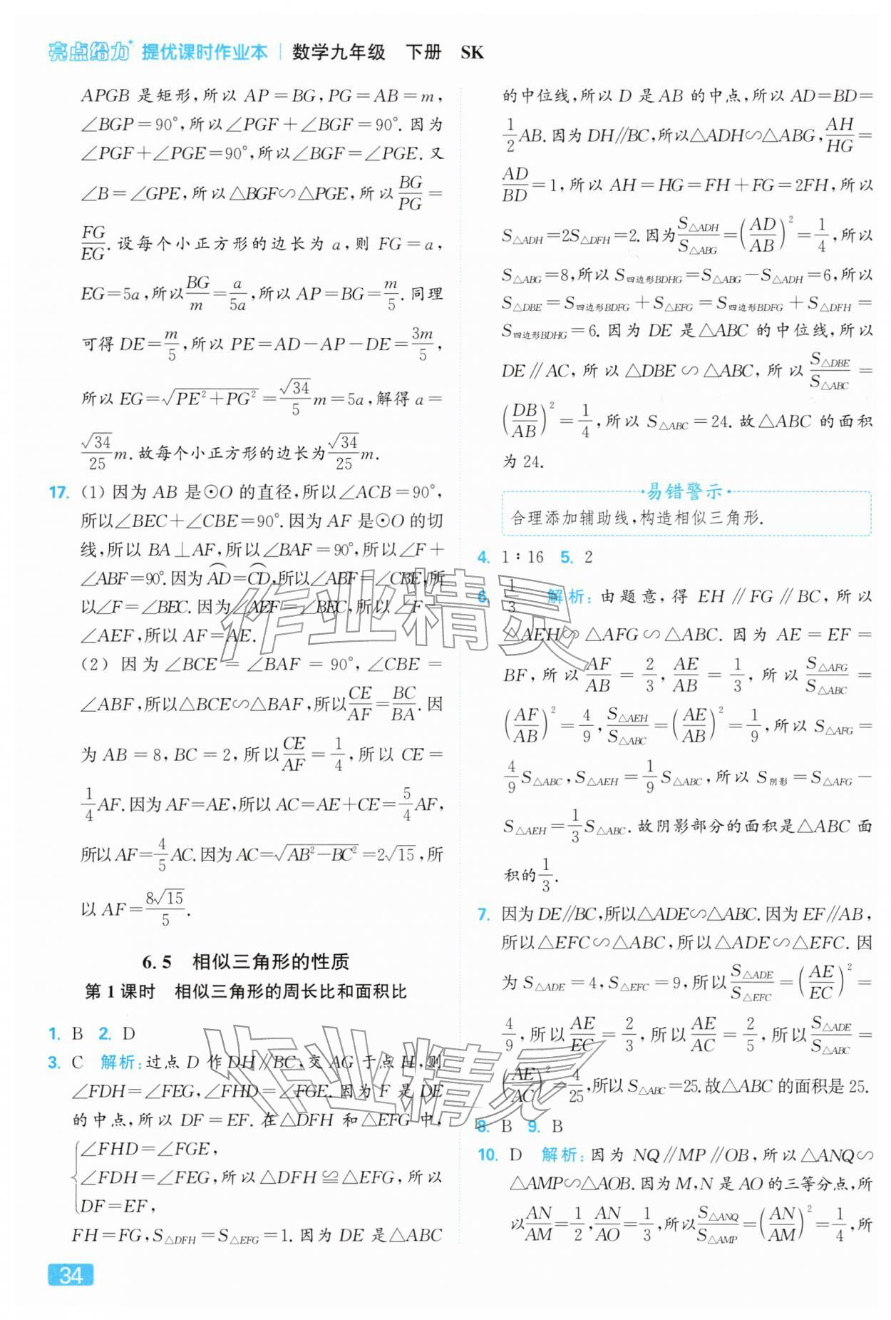 2026年亮点给力提优课时作业本九年级数学下册苏科版第34页