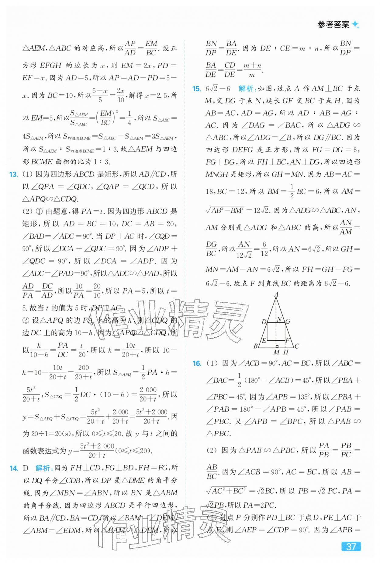 2026年亮点给力提优课时作业本九年级数学下册苏科版第37页