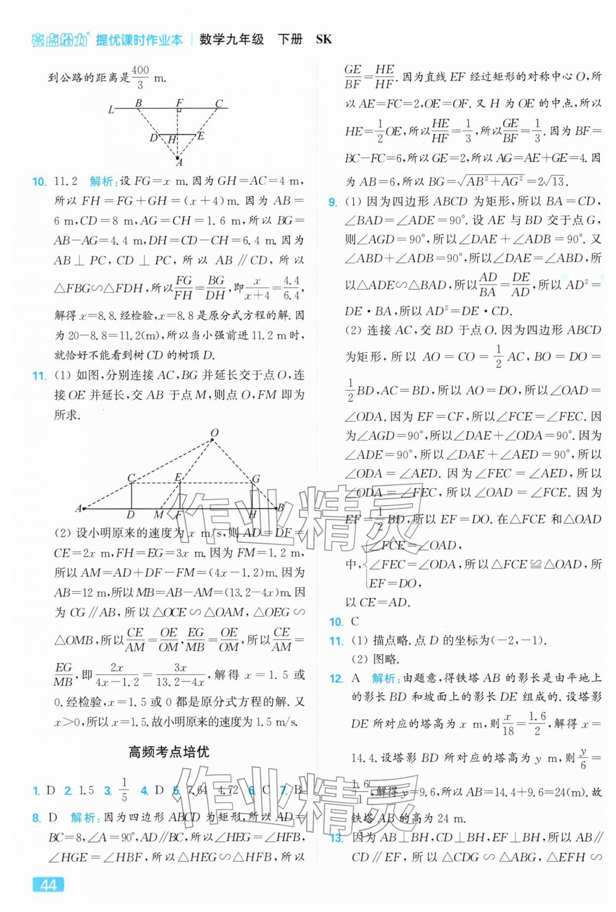 2026年亮点给力提优课时作业本九年级数学下册苏科版第44页