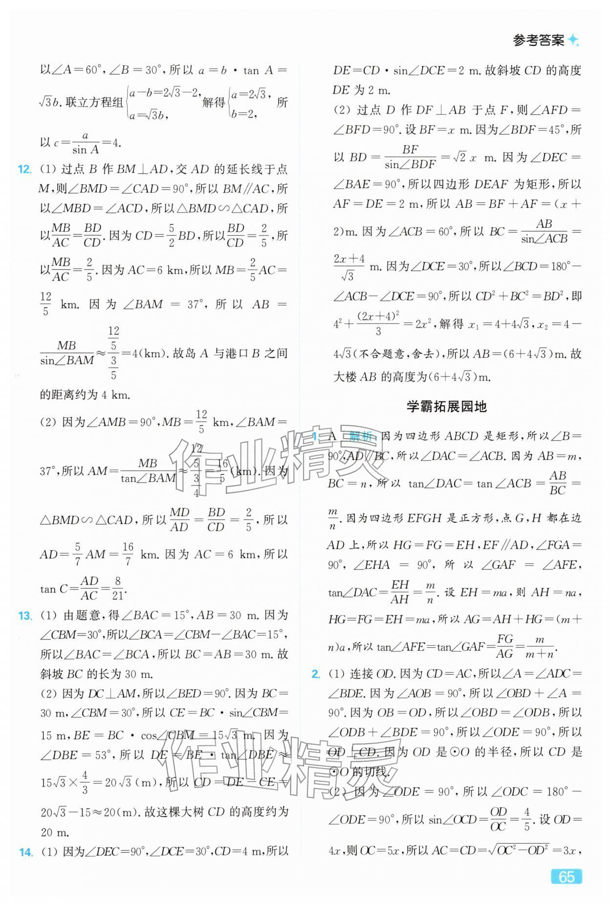 2026年亮点给力提优课时作业本九年级数学下册苏科版第65页