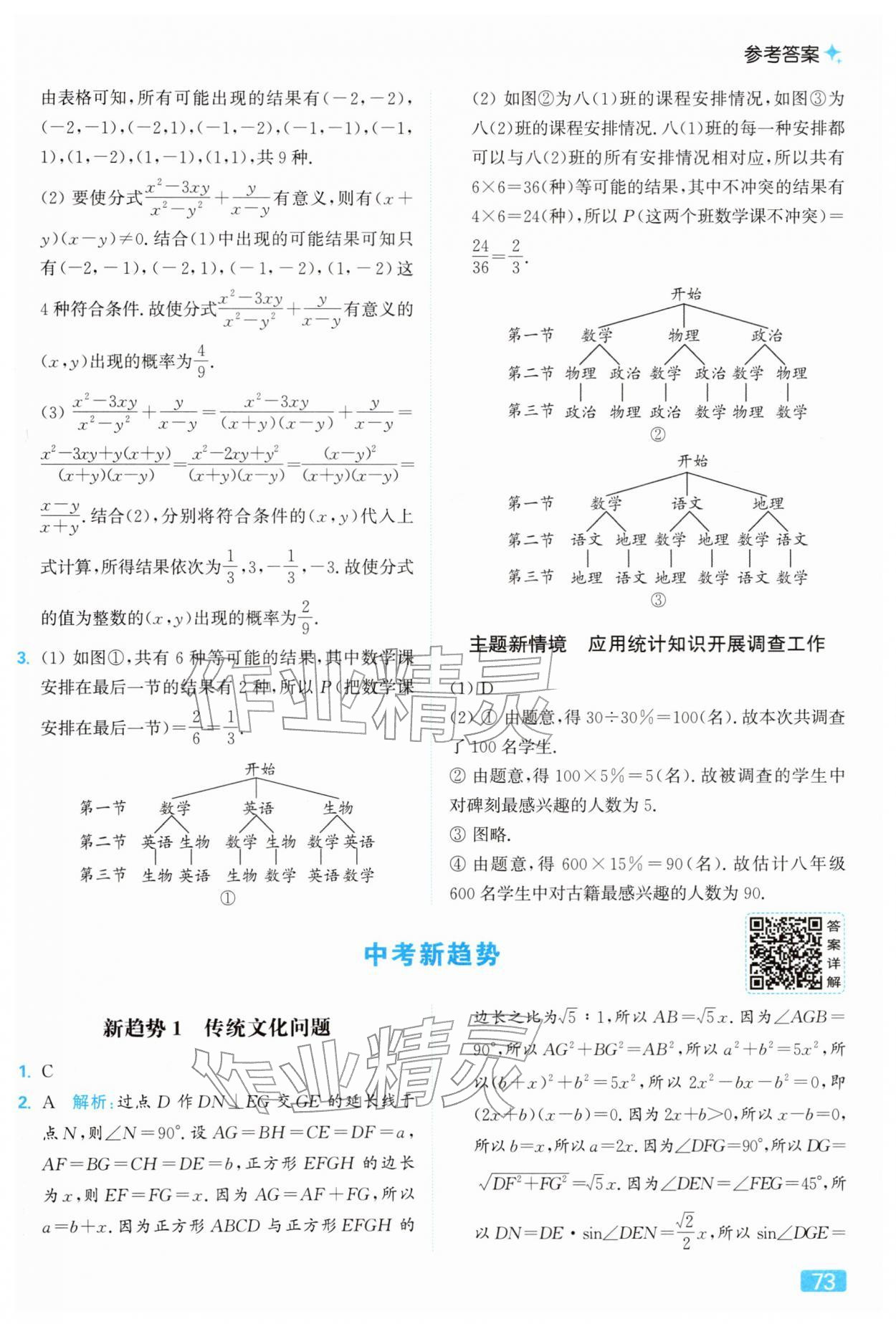 2026年亮点给力提优课时作业本九年级数学下册苏科版第73页