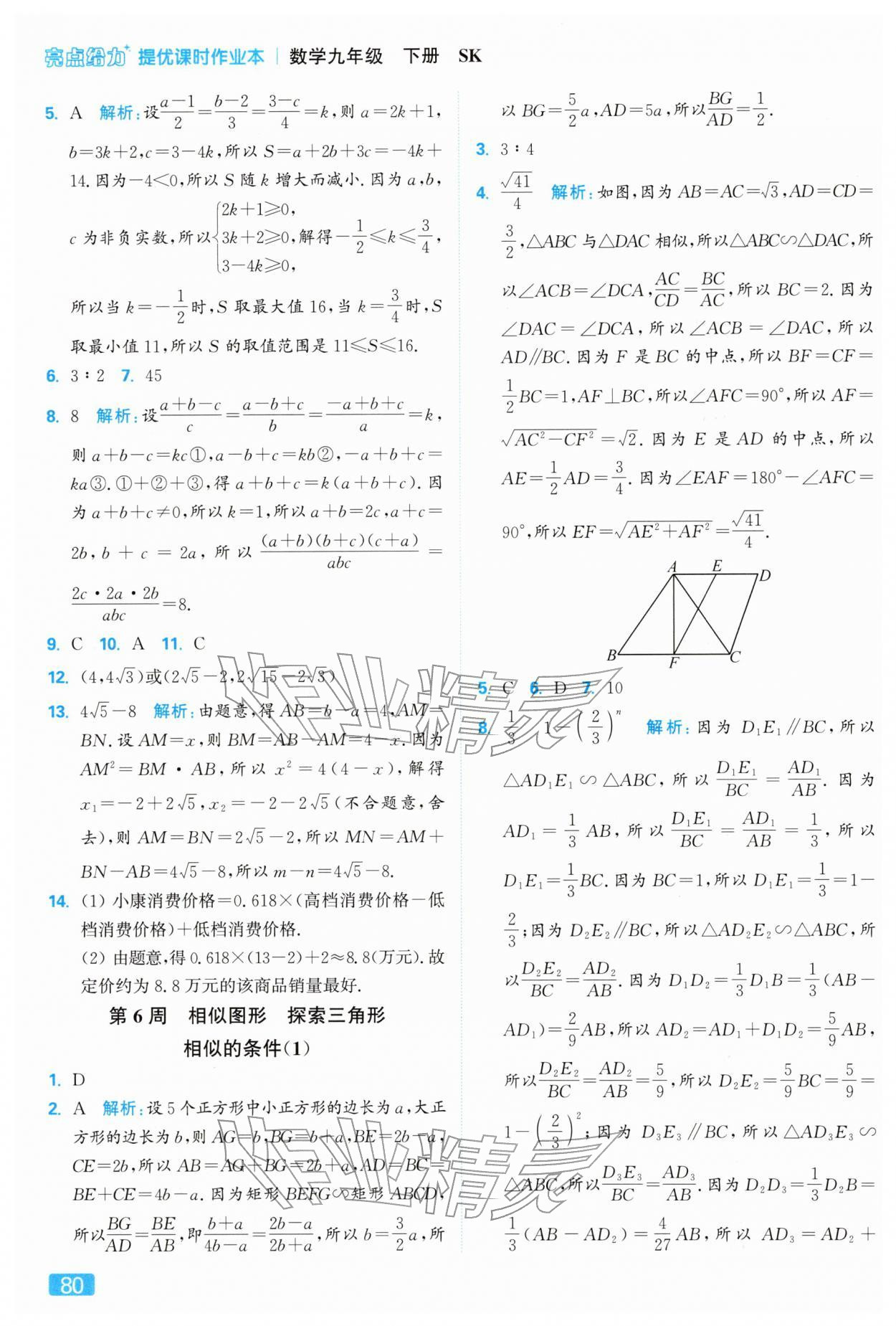 2026年亮点给力提优课时作业本九年级数学下册苏科版第80页