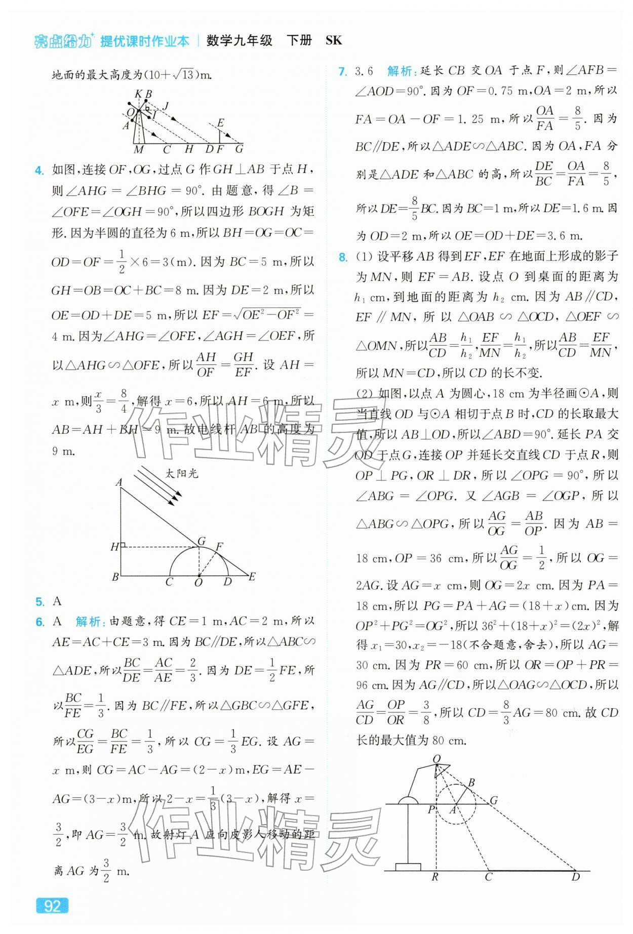 2026年亮点给力提优课时作业本九年级数学下册苏科版第92页