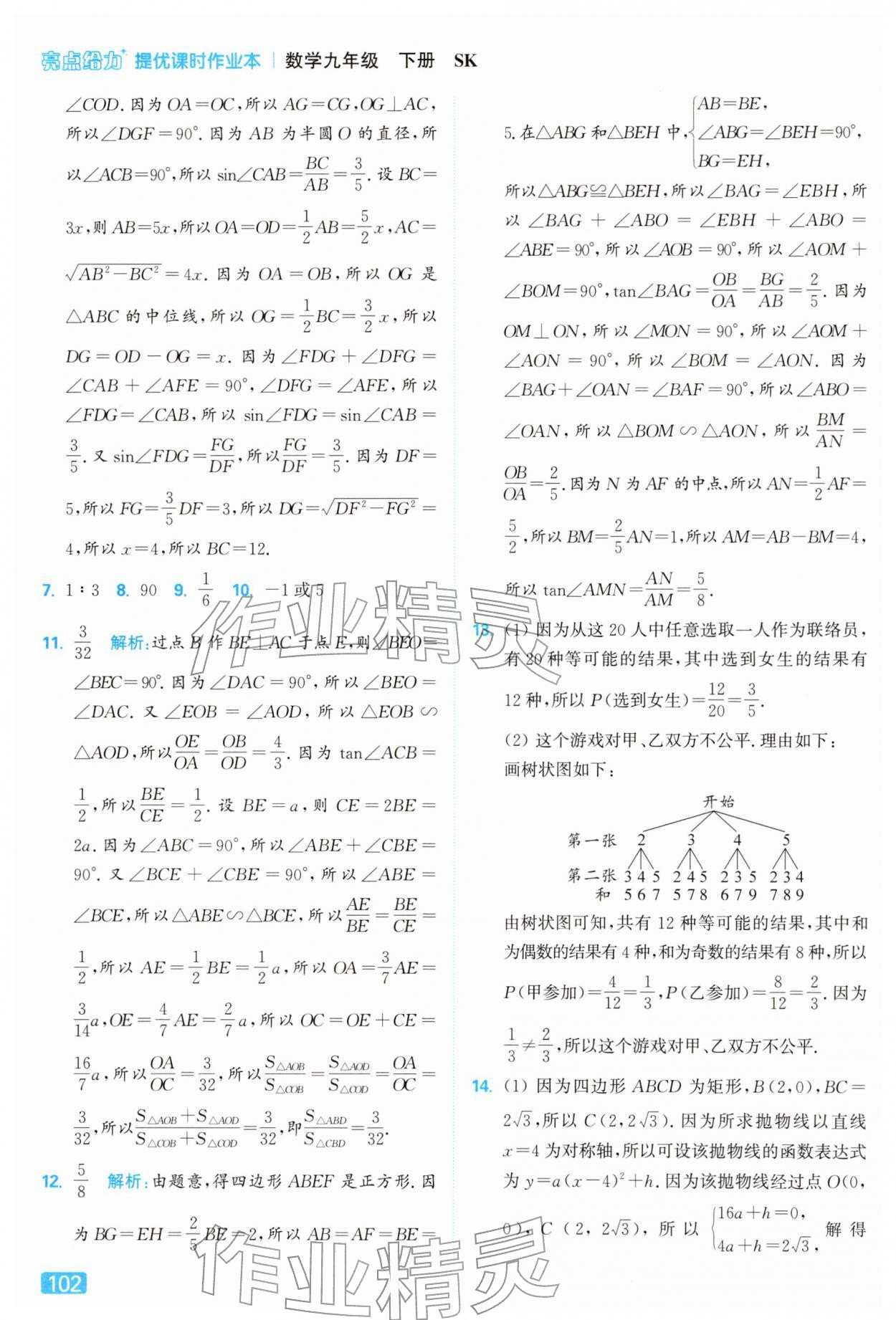 2026年亮点给力提优课时作业本九年级数学下册苏科版第102页