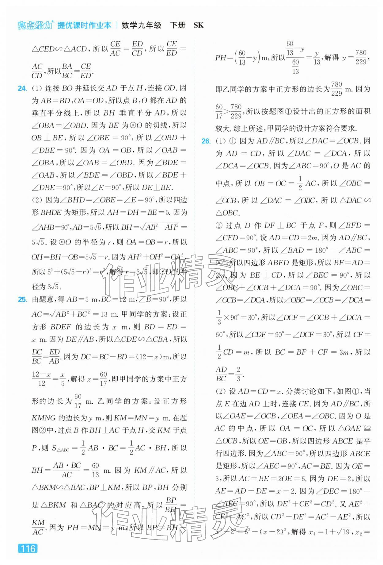 2026年亮点给力提优课时作业本九年级数学下册苏科版第116页